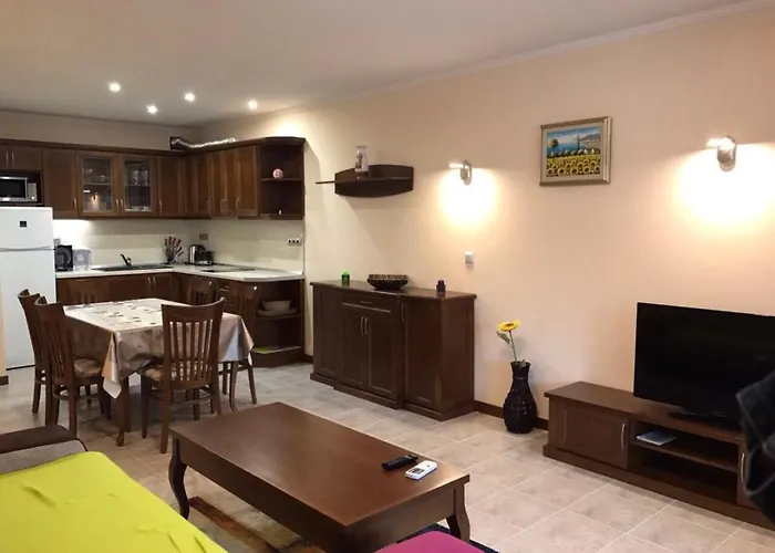 Пляжные Апартаменты Casa Real с бассейном и патио разместились в районе Yurta, всего в 10 минутах езды от Лунапарка Солнечного Берег. Эти апартаменты площадью 130 м^2 расположены в 1 км от центра города и предлагают аквапарк на территории.